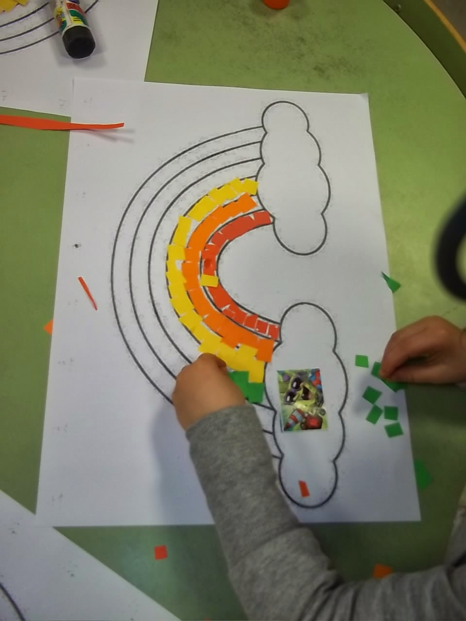Así que hoy nosotros vamos a llamar a los colores para que vengan.. .. vamos a llamar al arco iris para que aunque llueva salga el sol y nos ilumine con su magia